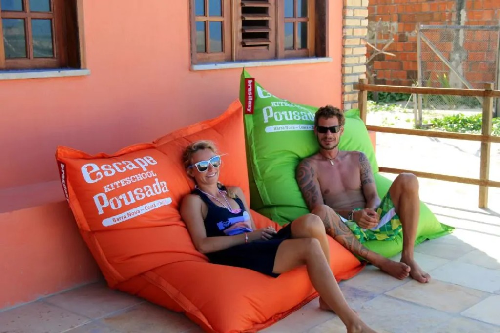 Usando o puff almofadão para criar uma área de relaxamento ao ar livre